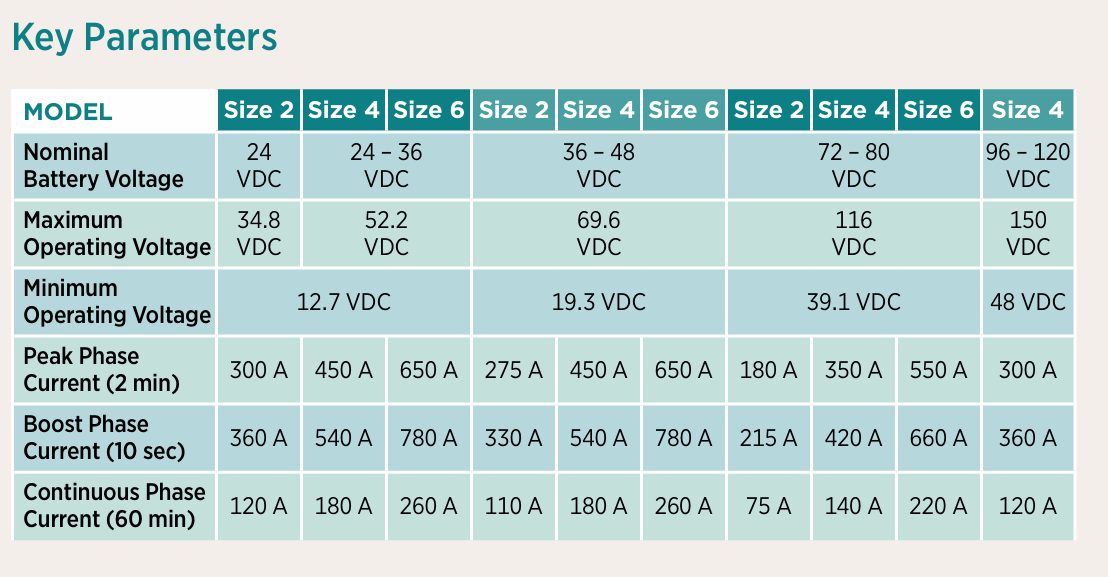 The Gen4 range provides support for the following motor types and control modes: